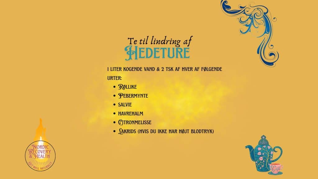 Her er lidt om de urter jeg foreslår til denne teblanding, og hvordan de hver især kan hjælpe ved hedeture: